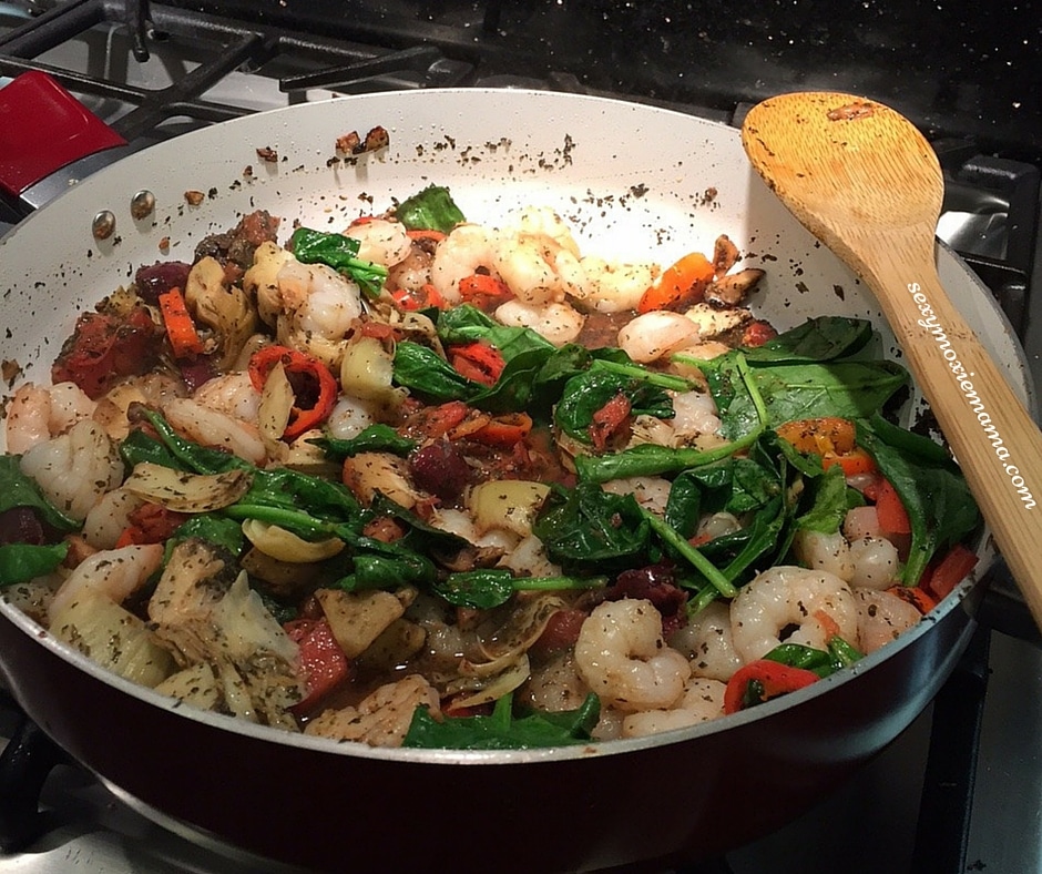 The amazing marriage of the Mediterranean inspired ingredients help to transform boring shrimp into a work of art. The sweet, tangy, and savory flavored of the olives, peppers, artichoke hearts, spinach, and basaltic vinegar help to pull out the flavored of the herbs and spices in this recipe and awakening all of your senses.